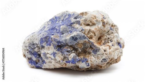 Detailed shot of raw lazulite specimen from rock collection against white backdrop