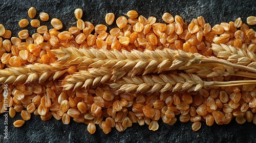 detailed shot of ripe golden wheat heads showcasing their texture and vibrant color