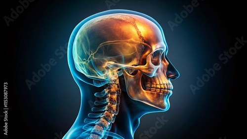Detailed Skull X-Ray: Profile View of Bone Structure in Low Light Clinical Setting
