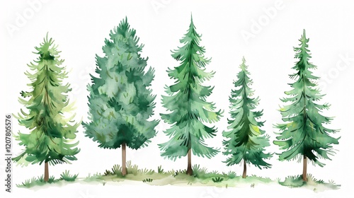 Detailed Spruce Fir Tree Watercolor Forest Isolated White Background