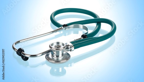 Detailed Studio Shot of a Teal Stethoscope on a Gradient Blue Background