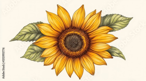 sunflower, flower, illustration, art, botanical, nature, floral, plant, drawing, design, yellow, orange, vintage, decorative, graphic, summer, spring, autumn, leaf, green, detailed, realistic, background, vector, image, beauty, isolated, pattern, print, poster, decor, home, garden, organic, artistic, print, wallpaper
