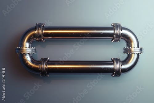 industrial, metal, pipe, pipeline, steel, curve, elbow, connector, fitting, junction, joint, flange, screw, bolt, hardware, metallic, shiny, polished, surface, construction, engineering, mechanical, connection, component, system, pressure, fluid, flow, infrastructure, factory, manufacturing, equipment, design, three-dimensional, render, light, shadow, gradient, clean, abstract, texture, smooth, round, structure, detail, technology, shape, background