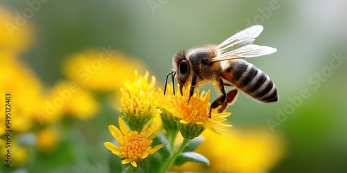 Detailed View of Bee Sipping Nectar