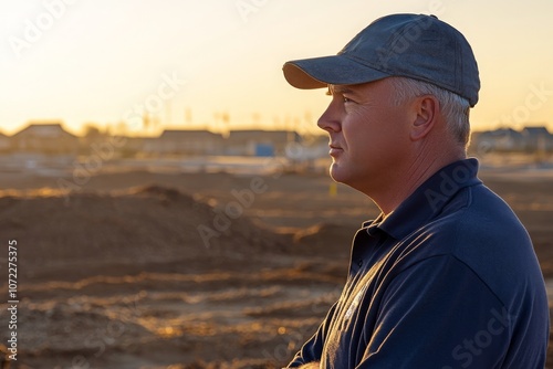 developer, new, home, site, shot, gold, hours, housing, development, background, construction, landscape, profile, man, planning, vision, project, architecture, real estate, industry, sunset, horizon, professional, men at work, serene, calm, dusk, earth, job, concept, image, field, vacant, area, future, opportunity, expansion, perspective, observer, shallow, depth, composition, headwear, thoughtful