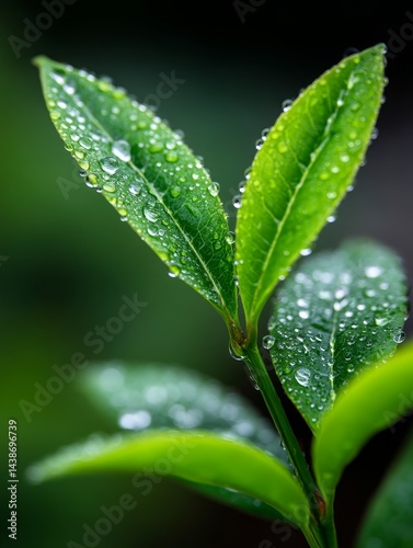 Dewy Green Leaves Close Up - Freshness, nature, purity, growth