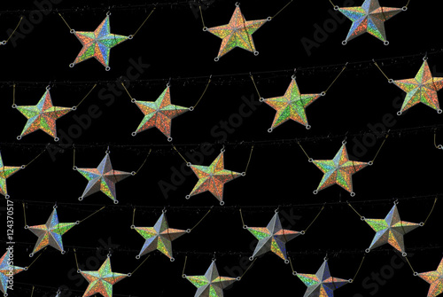 christmas, christmas, festive, holiday, gold, decoration, seasonal, symbolic, hanging, star, ornament, dark, background, pattern, row, diagonal, greeting, celebration, shape