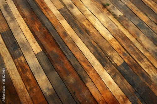 Diagonal wooden planks featuring warm hues, interlocking textures revealing contrasting wood grain patterns
