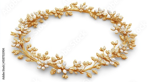 Diamond floral necklace, gold, jewelry, white background, luxury, advertising