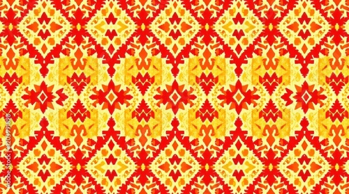 diamond seamless pattern. The ikat geometric folklore ornament displays tribal ethnic vector texture in Aztec style, reminiscent of folk embroidery from Indian, Moroccan, Turkish, and