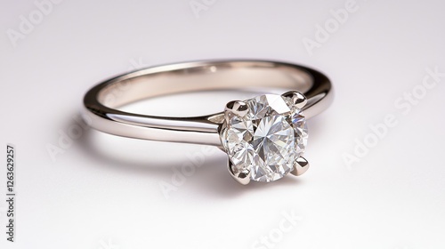 Diamond solitaire ring close-up, elegant jewelry, white background, high-quality product photography, showing off sparkle