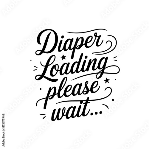 Diaper Loading Please Wait…. Baby Shower Vector Design Isolated on White Background