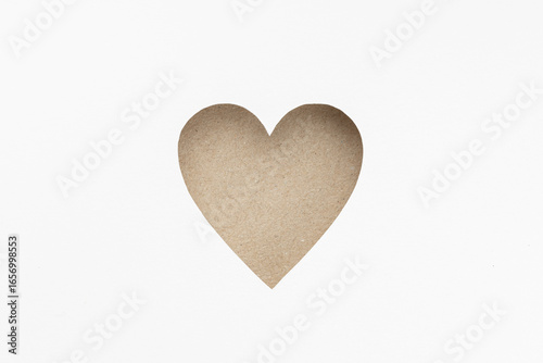 Die-cut Cardboard Heart shaped isolated on white paper background. Love concept