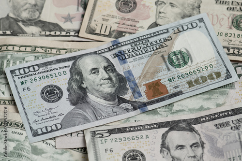Different banknotes of american dollars