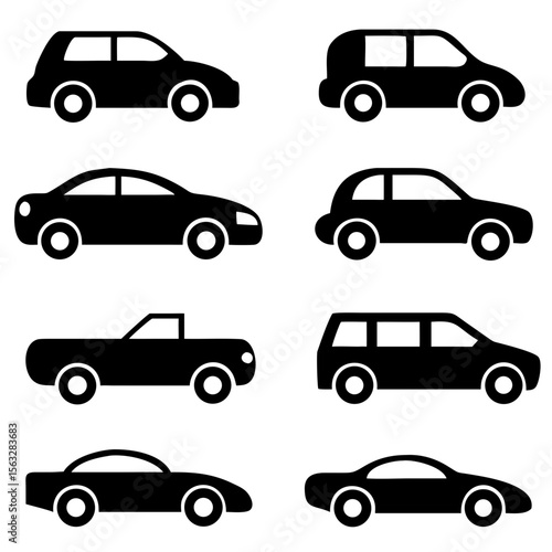 car, icon, silhouette, sedan, vector, icon, isolated, illustration, sport, black, car, bus, set, automobile, vehicle, transportation, motor, suv, transport, auto, cabriolet, van, pickup, symbol, mini, pecking, small, up