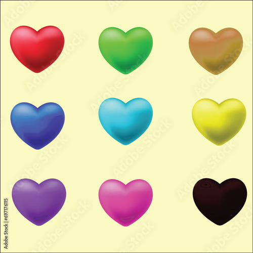 Different color glossy heart icons
