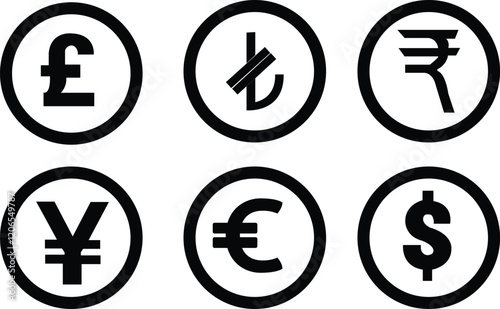 Different currency designs silhouette,Most important currency vector,Dollar,euro,pond collection,Stock market currency set, Foreign exchange notes and currency in stock exchange