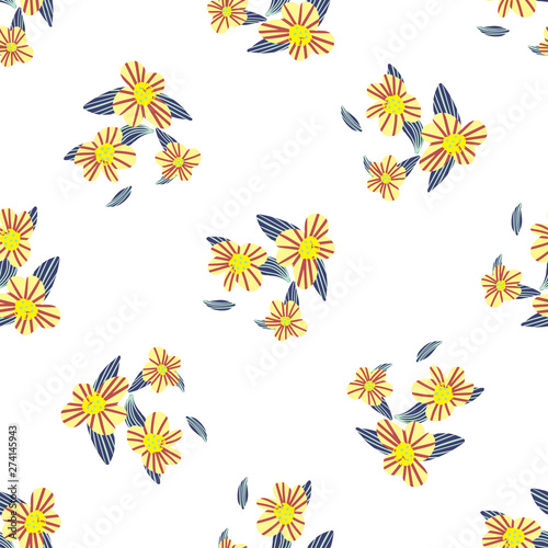 Different fantasy flowers are the seamless pattern in abstract style on a colorful background. Vector floral background. Summer background. Design illustration vector. Vector spring template.