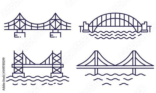 bridge, icon, string, geometric, logotype, logotype, architecture, attraction, design, historic, illustration, label, symbol, town, vector, sea, structure, isolated, pictogram, engineering, different, type, icon, set, collection, linear, outline, line art, stroke, editable, line, monochrome, black-and-white, bw