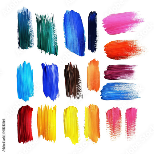 Different types of brush strokes on a transparent background showcasing vibrant colors and textures, Different types of brush strokes transparent background. Abstract brush stroke transparent