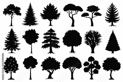 tree, silhouette, vector, leaf, nature, forest, illustration, palm, plant, pine, black, oak, tree branch, flower, pattern, set, design, tree, autumn, collection, icon, birch, element, decoration, symbol