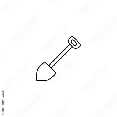 digging farm, gardening shovel icon in flat black line style, isolated on white background