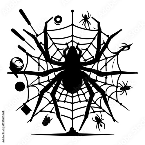 spider, web, insect, animal, halloween, nature, arachnid, vector, black, illustration, bug, danger, widow, net, horror, spider's web, silhouette, scarey, poisonous, fear, symbol, design, creepy, macro