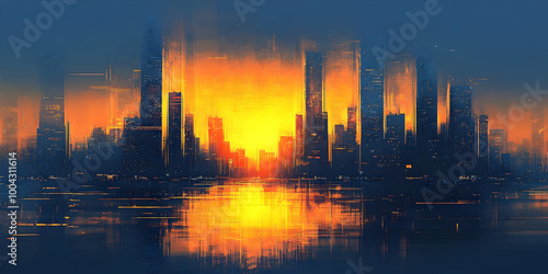 city landscape, sunset, digital artwork, urban, illustration, architecture, building, skyline, water, horizon, dusk, twilight, abstract, background, modern, graphic design, artwork, painting, graphic, design, aesthetic, art, poster, photo, digital, photo, print, city, night, urban art, street art, abstract art, fine art, minimalist, minimal