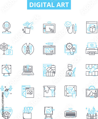 Digital art vector line icons set. Digital, art, graphic, design, illustration, photography, painting illustration outline concept symbols and signs