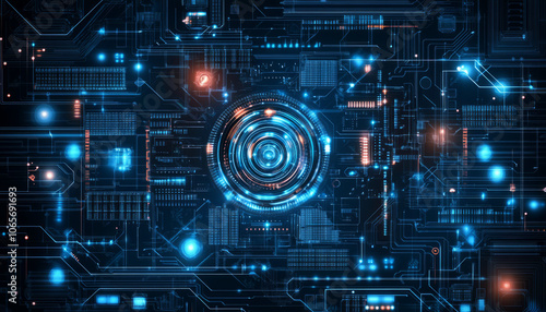 Digital background perfect for tech processes, neural networks, artificial intelligence, data transfer and encryption
