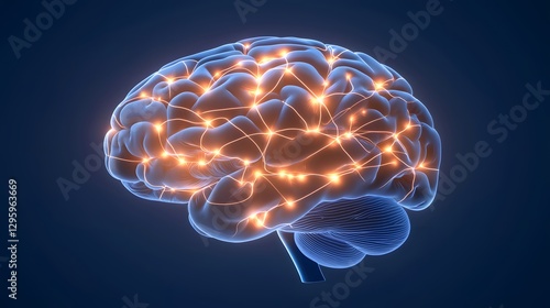 Digital Brain Rendering with Glowing Neural Connections Representing Intelligence and Creativity