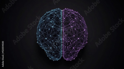 Digital Brain with Blue and Purple Neural Network Connections on Black Background