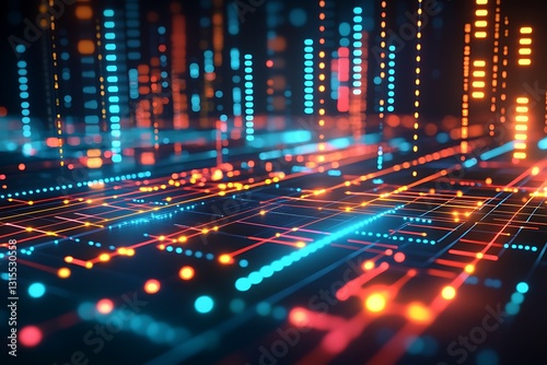 network, digital, city, line, glowing, datum, technology, abstract, background, futuristic, connection, communication, cyberspace, grid, structure, pattern, light, orange, blue, red, dot, point, node, wire, cable, circuit, board, electronic, information, global, earth, space, virtual, reality, innovation, progress, modern, design, illustration, graphic, art, pixel, web, online