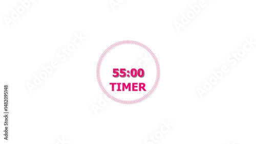 Digital countdown timer magenta red color 4k illustration of 55 second on transparent on white background. 55 seconds digital timer 4k illustration.