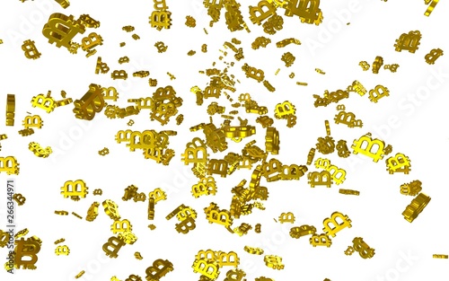 Digital currency symbol Bitcoin on a white background. Fall of bitcoin. crypto currency graph on virtual screen. Business, Finance and technology concept. 3D illustration