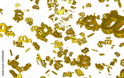 Digital currency symbol Bitcoin on a white background. Fall of bitcoin. Cryptocurrency graph on virtual screen. Business, Finance and technology concept. 3D illustration