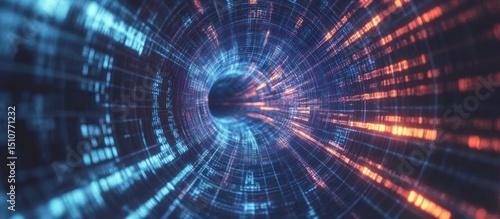 Digital data stream tunnel, cyberspace flow, future tech background