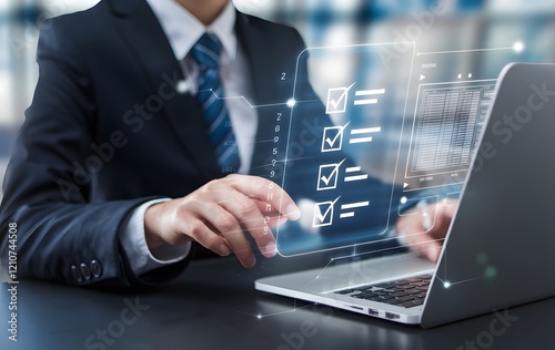 Digital Document Management Concept with Touch Interaction on a Laptop