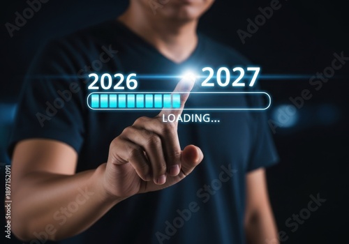 Digital Future Planning Interface Showing 2026 to 2027 Progress Loading Bar with Finger Touch