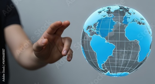 Digital Globe Projection: Futuristic Technology and Human Connection Pointing Towards Global Network and Innovation