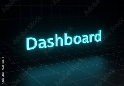Digital Glowing "Dashboard" Text on a Dark Grid Background, Perfect for Data Visualization, Analytics, and Business Intelligence Concepts