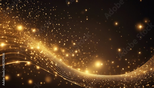 Digital gold particles wave and light abstract background with shining dots stars