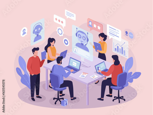co-worker, diverse, ai, artificial, intelligence, hot line, help desk, client, support, service, teamwork, collaboration, digital, futuristic, communication, operator, assistant, bot, technology, online, virtual, automation, feedback, rating, response, problem, solving, solution, consulting, management, strategy, interface, workspace, remote, cloud, datum, dashboard, hologram, innovation, modern, office, team, discussion, interaction, agent, call center, software
