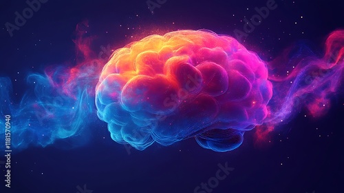 Digital illustration of a brain with memory emotion and reasoning areas highlighted in vivid colors designed for cognitive neuroscience visuals