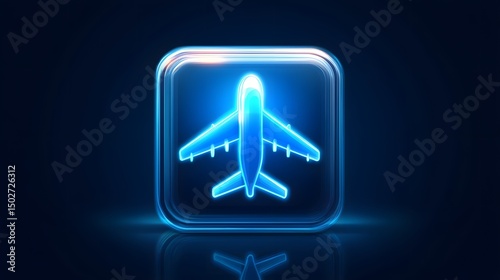 aeroplane, aircraft, jet, blue, neon, light, glow, reflective, metallic, futuristic, technology, icon, digital, vector, sharp, outline, design, shape, symbol, transport, transportation, aviation, modern, graphic, illustration, vibrant, dynamic, intensity, bright, shiny, energy, precision, monochrome, minimalist, sleek, space, silhouette, travel, aerodynamic