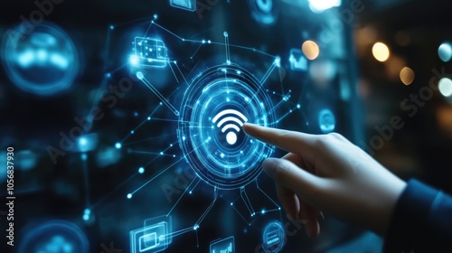 woman, using, tablet, digital, technology, connected, device, cyberspace, cyber, security, networking, icon, cloud, computing, smart, home, automation, science, virtual, communication, high, tech, online, modern, electronic, person, touch screen