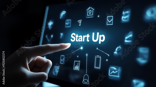 Digital Interface Representing Business Concept with Focus on Start Up, Featuring Innovative Technology Icons and Interactive Elements for Modern Entrepreneurs
