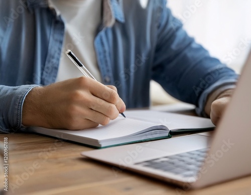 Digital Learning Hand of Male Student Writing Notes in Notebook