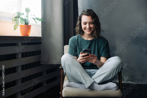 Digital Lifestyle: Young Woman Engages in Communication and Productivity Through Smartphone in the Comfort of Home. A Blend of Study, Work, and Connection in the Digital Age.