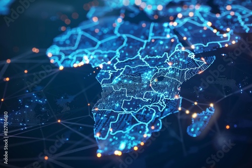 Digital Map of Africa Network Connection created with Generative AI